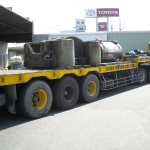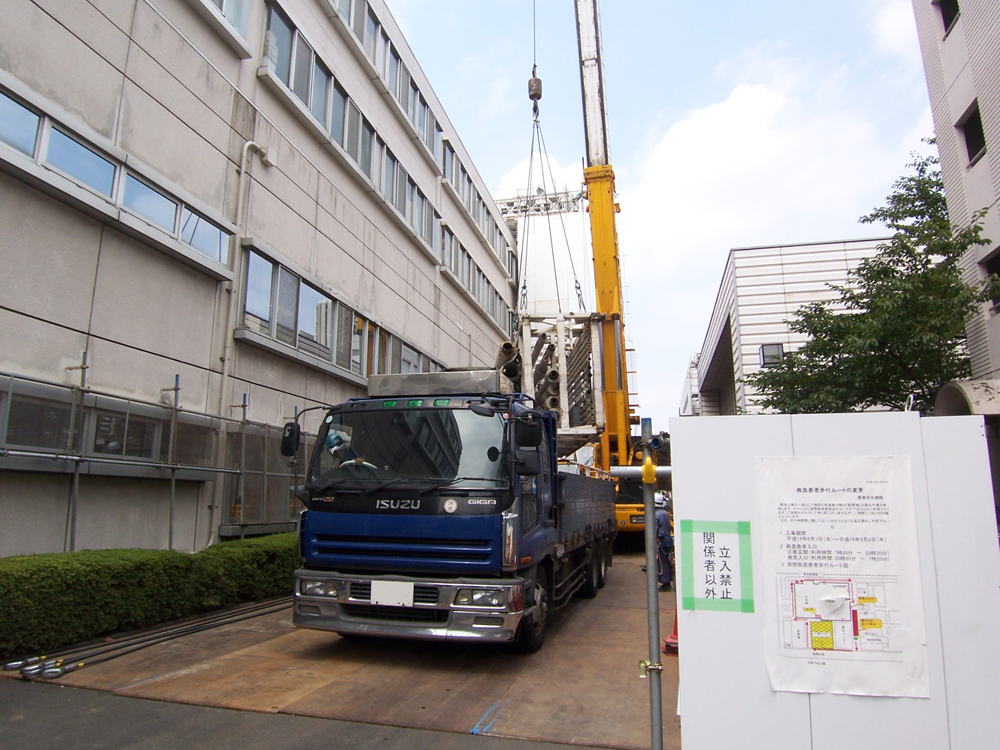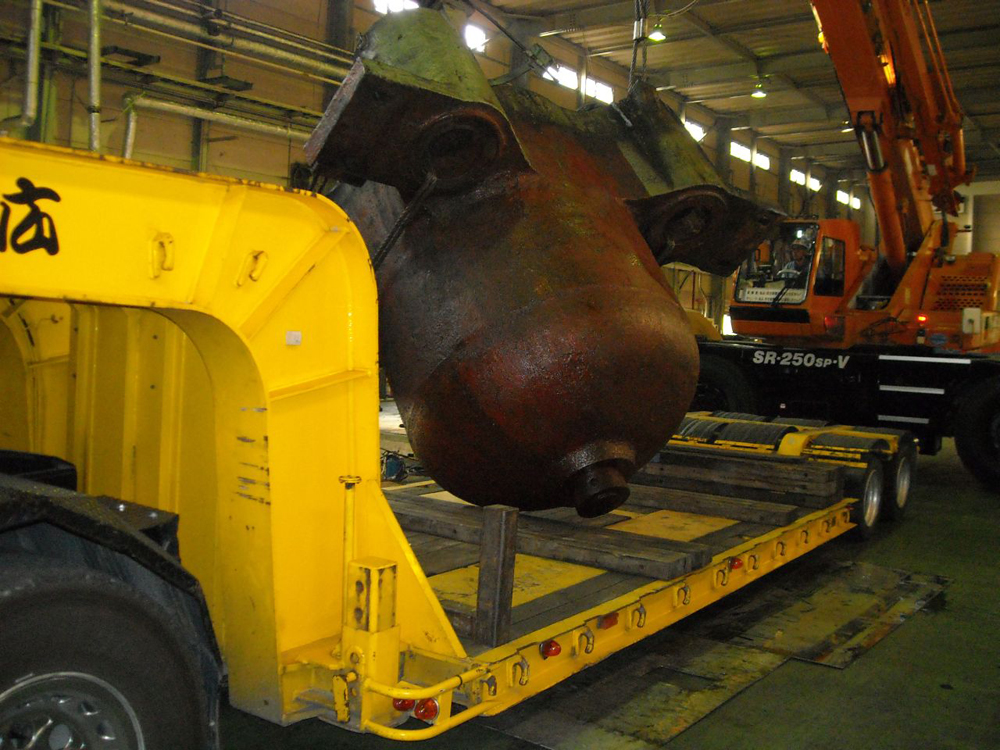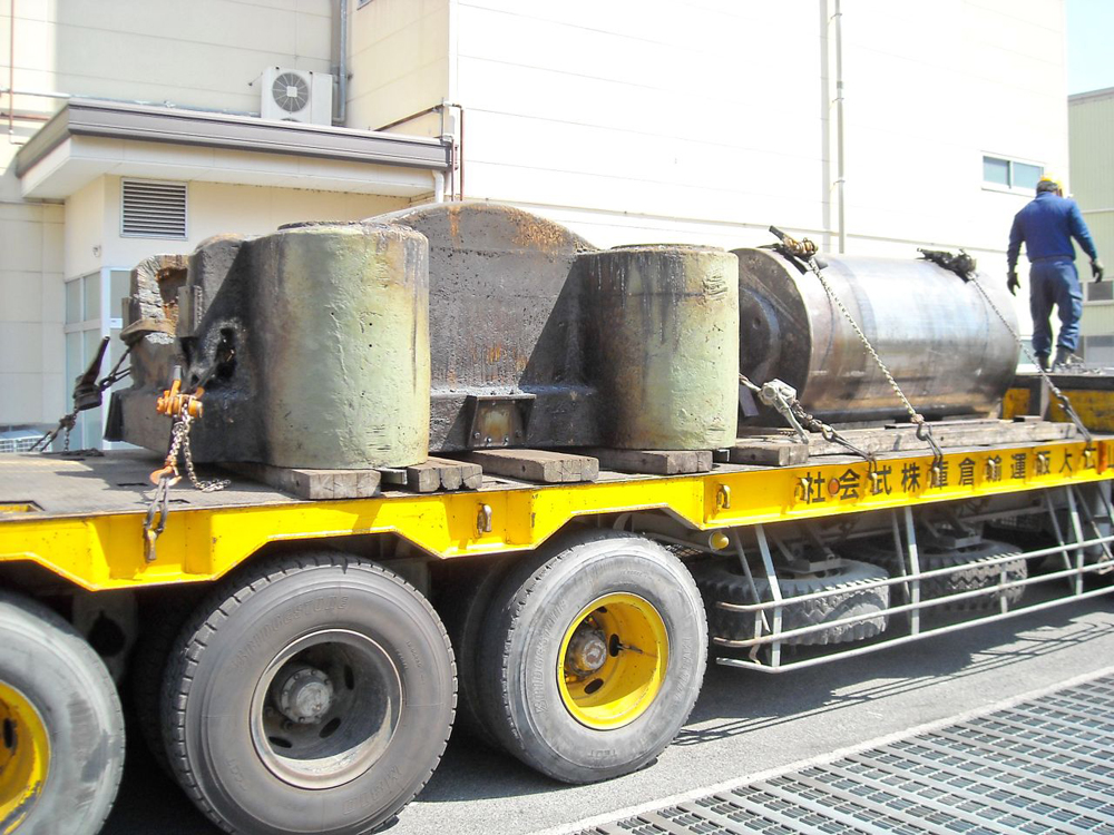 重量物事業 建築資材や橋梁桁、大型機械類などの重量物輸送、機械類の据付、解体、撤去工事などを行います。トレーラーや大型クレーンなどの特殊車両・機器を駆使し安全確実な作業をスピーディに行います。安定したサービスの維持を実現するとともに、緊急時の要請にも即応します。超重量物でも様々な現場やいろんな用途に対応できます。